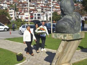 По повод 11. Октомври-Денот на народното востание, делегација на Општина Охрид предводена од Ана Крстеска, заменик градоначалник, положи свежо цвеќе...
